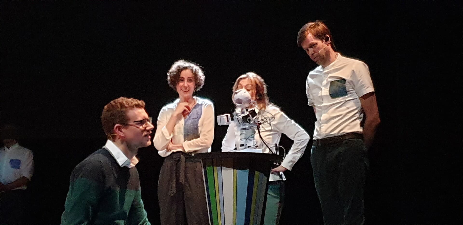 Improbotics is an improv theatre production in which an artificial intelligence performs improvised scenes with the other actors. This is accompanied by our robot Alex, who can move its limbs and head, even look at you angrily.